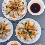 - To Serve:One plate is usually between 8-12 dumplings, depending on how hungry you are or how big you've made the dumplings! Garnish with fried shallots and a few spoonfuls of vegan nuoc mam cham!