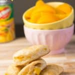 My love affair with canned peaches started with those little tin fruit cups they used to make for school before the no garbage rule (which I thought was a fantastic idea by the way). My mom used to buy the assorted fruit ones with peach, pear, grapes, and cherry, but seven-year-old Lisa would always get in trouble because my mom would catch me eating around the other fruits just to get to the peach chunks. I didn’t like the texture of pears, grapes in those cups were just…meh, and the cherries kind of freaked me out. The peaches, man. Juicy, smooth, bursting with delicious peachy flavour.