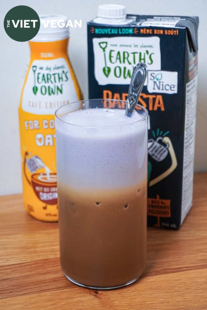 - Once your coffee has finished brewing, remove the phin, and stir to dissolve the sugar. Add ice and stir well to chill the coffee. Next add the oat coffee cream, and then that beautiful ube frothy m*lk. Stir well and enjoy! The ube is subtle and earthy and pairs so well with the bold, sweet Vietnamese coffee.