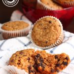 I would have immediately gone to comfort myself with a bag of M&Ms or something but I had class. I wish I had a batch of these muffins to inhale at the time, because they’re beautiful comfort food. I adapted my version from Averie’s recipe, mainly with a couple substitutions and a lot of omissions because I don’t have some of her ingredients in my pantry. These muffins are spiced, wonderfully pumpkin-y, dense yet still fluffy, and flecked with the smooth sweetness of chocolate chips.
