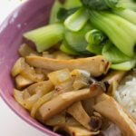 I thought I’d share this super simple mushrooms side dish that I eat with bok choy and bean curd. Bean curd is fermented soft tofu basically, otherwise called Chinese cheese, tofu cheese, or in Vietnamese—chao. It’s creamy, soft, and has a tanginess to it, and spicy if you buy the one in chilli oil. It is so good with blanched greens like mustard greens or bok choy. Comfort food at its finest.