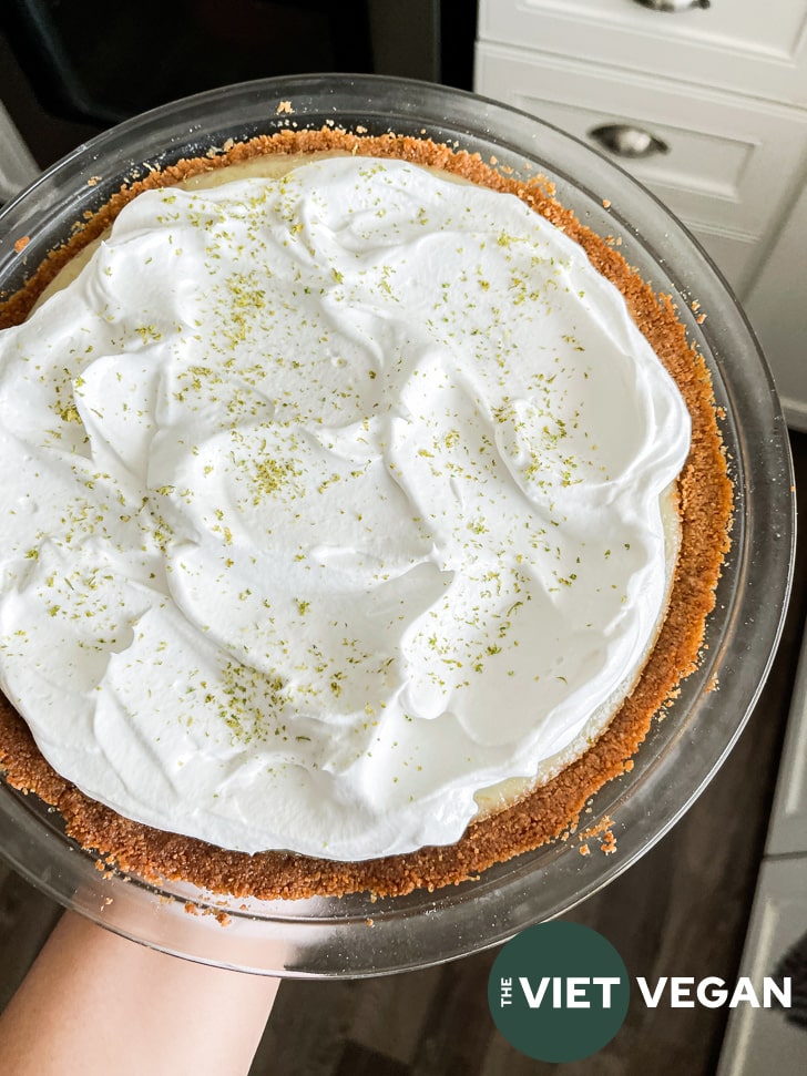 In self-proclaimed authentic Key lime pie recipes, I see folks using egg yolks to create the custard, which yields a creamy yellow filling. For this vegan key lime pie, I’m using a cooked cornstarch mixture to make this filling. As a result, you won’t be able to freeze this pie like you would with the non-vegan version.