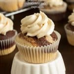 - Add liners to two cupcake pans (24 cupcakes total). Place both pans on an angle, using a ramekin or something of similar height underneath one side of the pan to sit on an angle.
