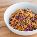 This vegan rainbow peach quinoa salad is perfect for a to-go lunch
